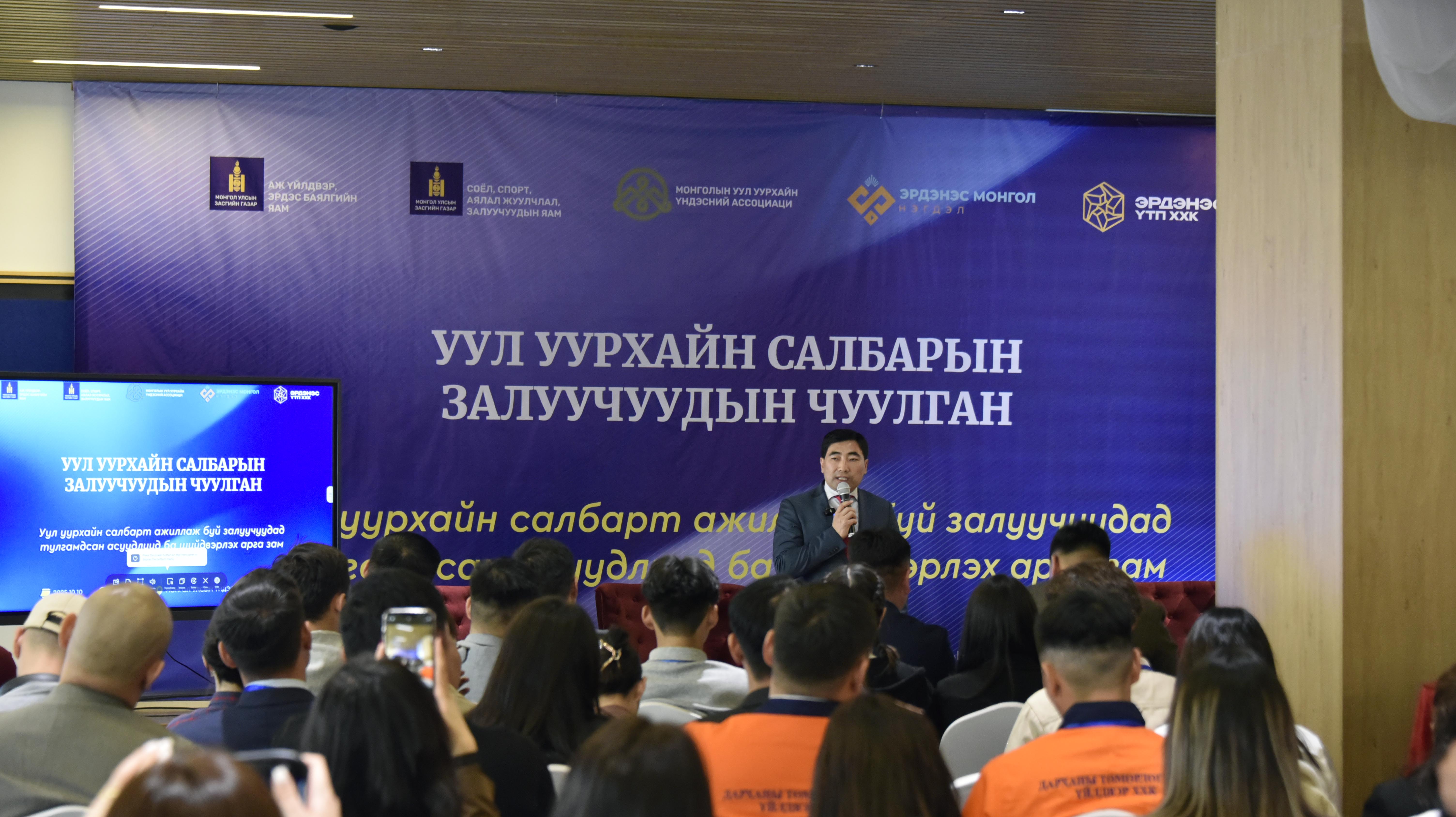 Аж үйлдвэр, Эрдэс баялгийн яам, Соёл, спорт, аялал жуулчлал, залуучуудын яам, Монголын уул уурхайн үндэсний ассоциаци, “Эрдэнэс Монгол” нэгдэл, “Эрдэнэс ҮТП” ХХК-ийн хамтран зохион байгуулсан Уул уурхайн салбарын залуучуудын чуулган 2025 оны 10-р сарын 10-нд Улаанбаатар хотноо зохион байгуулагдлаа.Чуулга уулзалтад уул уурхайн салбарын оюутан залуучууд тус салбарт ажиллаж буй мэргэжилтнүүд, хувийн хэвшлийн төлөөллүүд оролцож, Уул уурхайн өнөөгийн байдал, уул уурхайн салбарт ажиллаж буй залуучуудын өмнө тулгамдаж байгаа асуудал, тавигдаж буй зорилго, зорилтын талаар илтгэл сонсож, асуулт асууж, харилцан санал бодлоо солилцов.Уул уурхайн салбарын залуучуудын чуулганд АМГТГ-ын Уул уурхайн хэлтсийн дарга Т.Зууннаст оролцож, “Эрдэс баялгийн салбарын өнөөгийн байдал”сэдвээр илтгэл тавилаа.