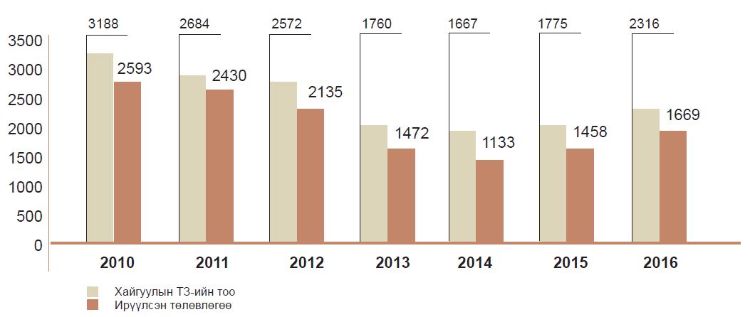 Хайгуулын ажлын төлөвлөгөө тайлангийн ирц, баталгаажуулалт нь хайгуулын тусгай зөвшөөрлийн тооноос буюу хайгуулын тусгай зөвшөөрлийн тоо хэмжээ жил бүр буурч хөрөнгө оруулалт багасаж байгаатай шууд хамааралтай юм.