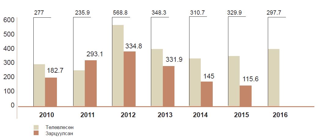 Голлох таван ашигт малтмалаар 2014-2021 онуудад батлагдсан нөөцийн хэмжээг графикаар доор харууллаа.