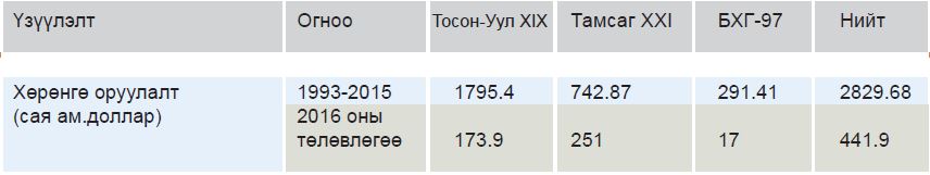 Хөрөнгө оруулалт (сая ам.доллар) |