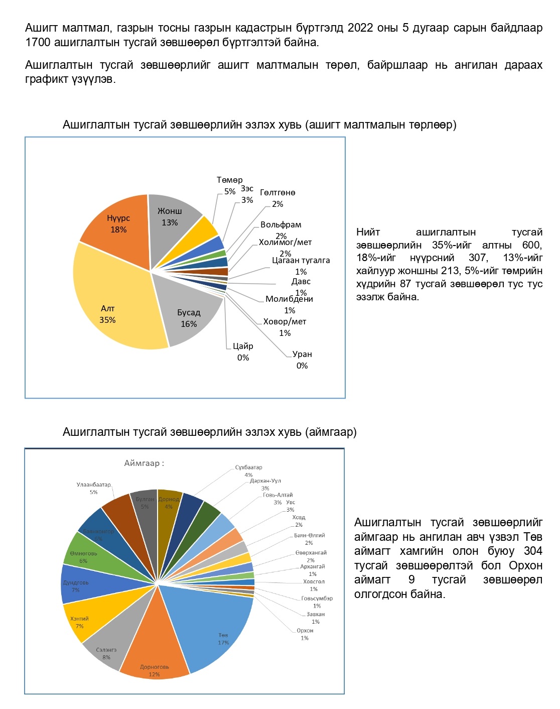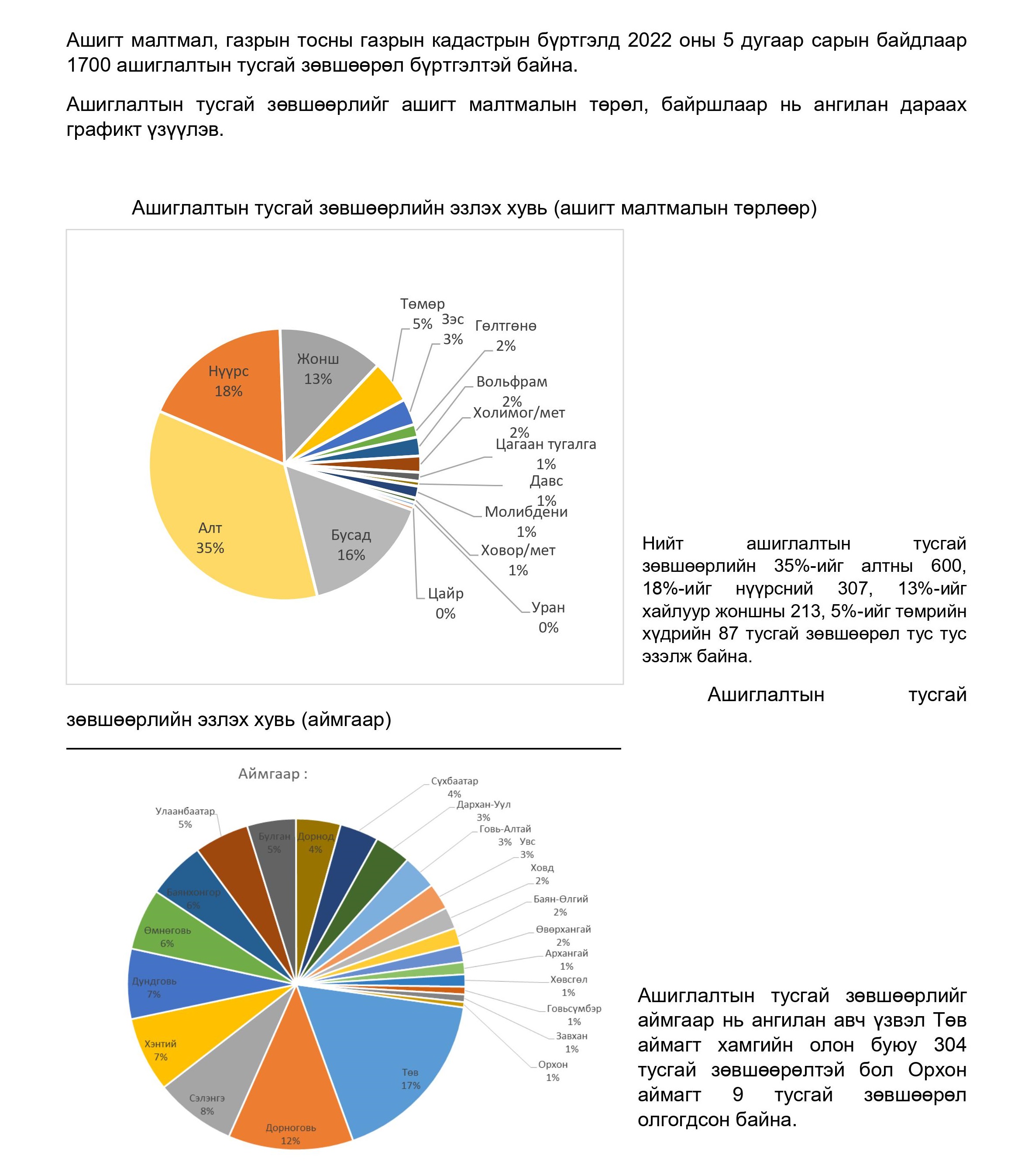 Ашигт малтмалын тухай хуулийн 42 дугаар зүйлд заасны дагуу байгаль орчныг хамгаалах, уурхай ашиглах, үйлдвэр байгуулахтай холбогдсон дэд бүтцийг хөгжүүлэх, ажлын байр нэмэгдүүлэх асуудлаар нутгийн захиргааны байгууллагаас тусгай зөвшөөрөл эзэмшигчтэй байгуулсан гэрээг эндээс харна уу. https://www.iltodgeree.mn/
